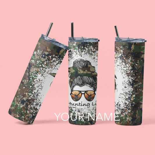 CUSTOMIZABLE HUNTING LIFE MESSY BUN HOT AND COLD TUMBLER