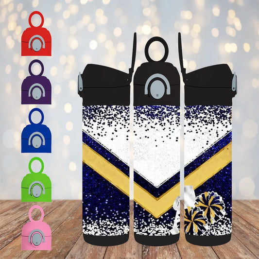 CUSTOMIZABLE BLUE AND GOLD CHEER HOT AND COLD TUMBLER