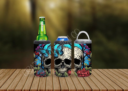 CUSTOMIZABLE STAIN GLASS WINDOW SKULL WITH A BUTTERFLY HOT AND COLD TUMBLERS