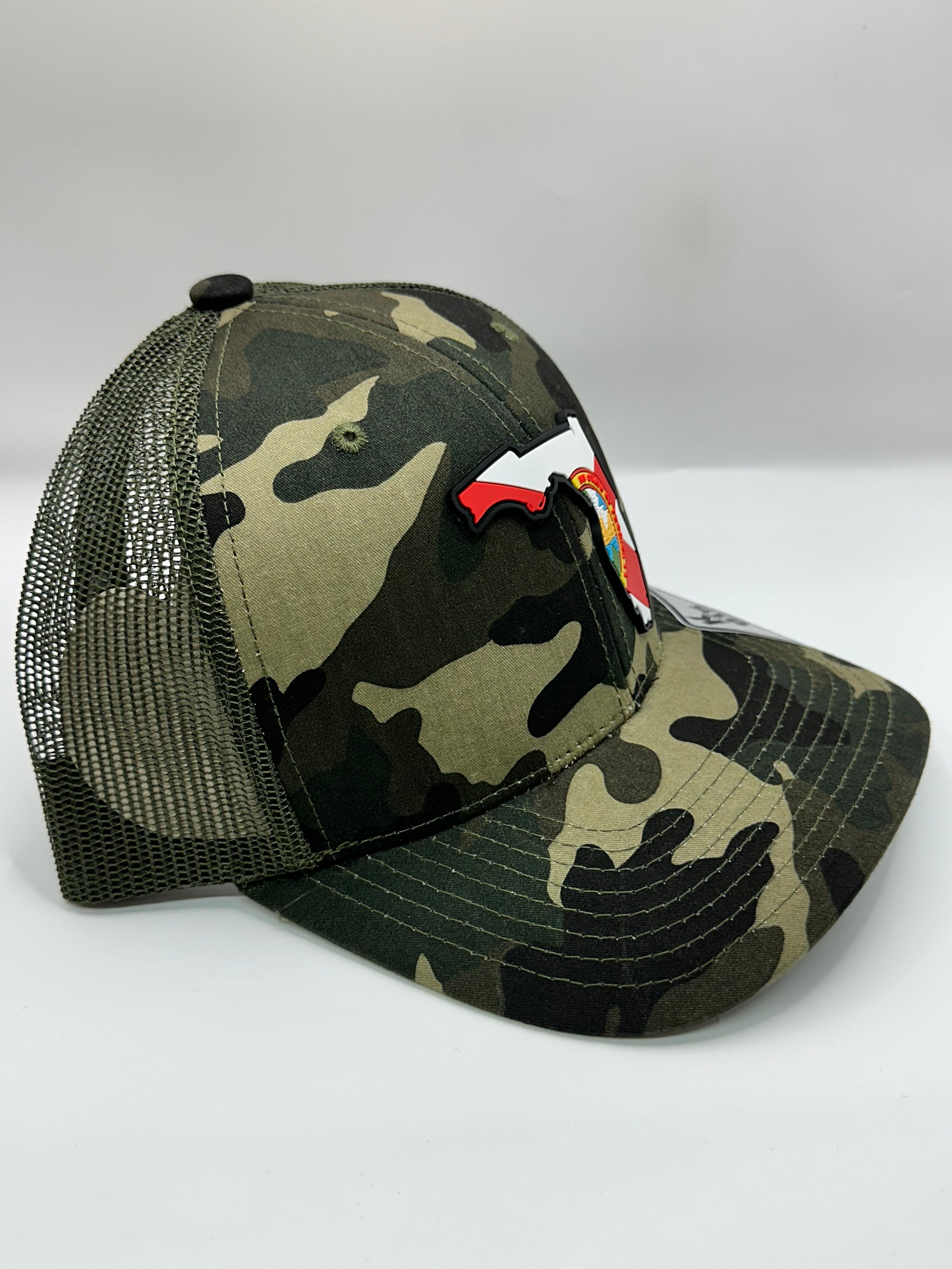 Camo Florida State Flag PVC Patch Kamel 815 Snapback Mesh Trucker Cap Slight Curve Hat Structured Mesh Back Adjustable Baseball Hat